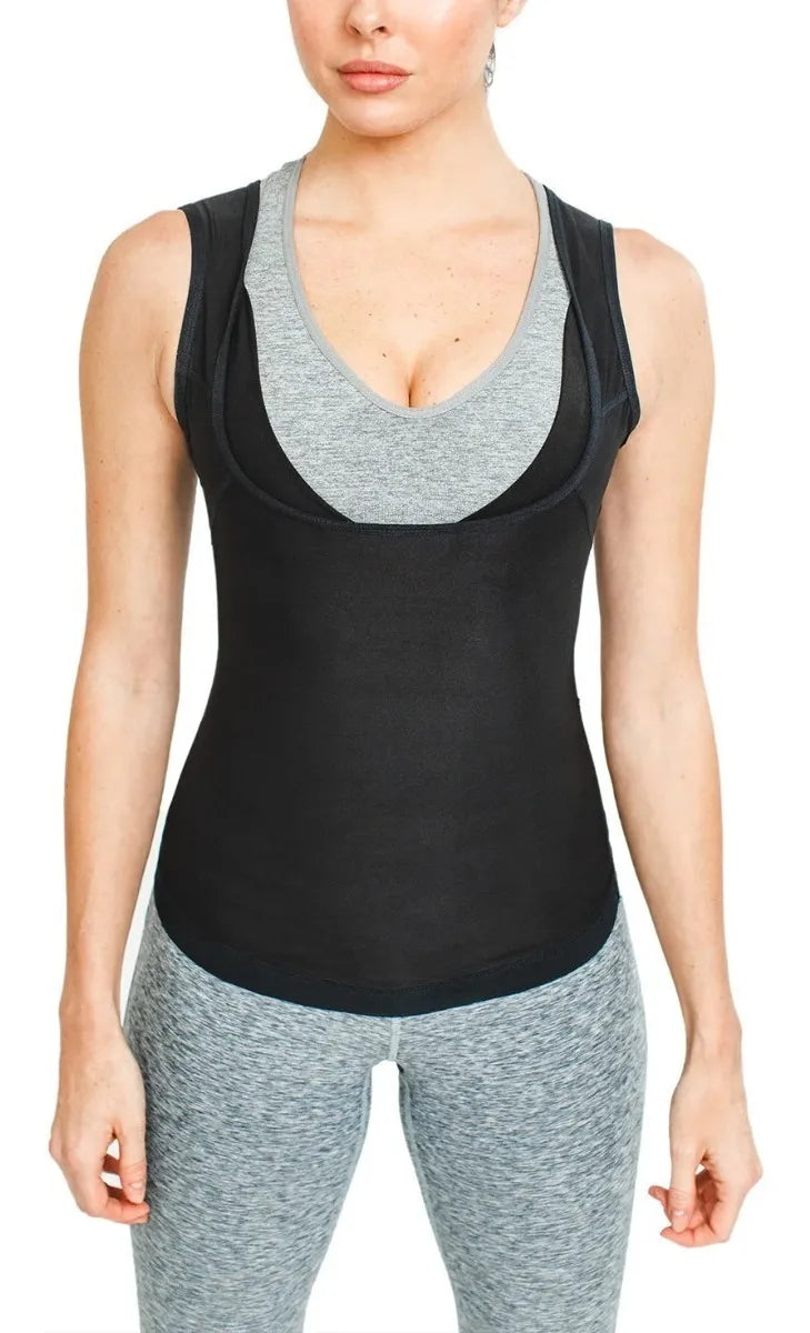 Las camisetas sin mangas están diseñadas con esta mezcla especial de telas de polímero y compresión que retienen el calor corporal para hacerte sudar más, eliminar más peso en agua y obtener resultados rápidamente.